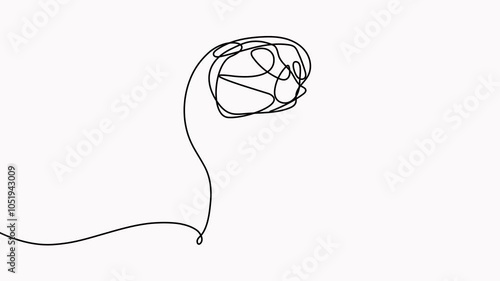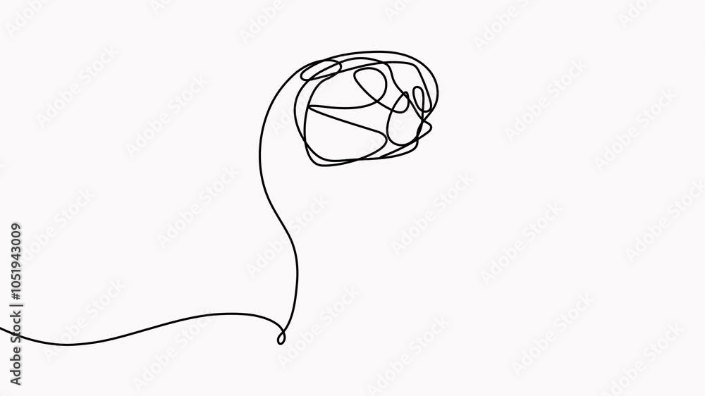 The watermark will not be included on Wall mural.: Head with mess line inside continuous line drawing - mental health concept animated video -