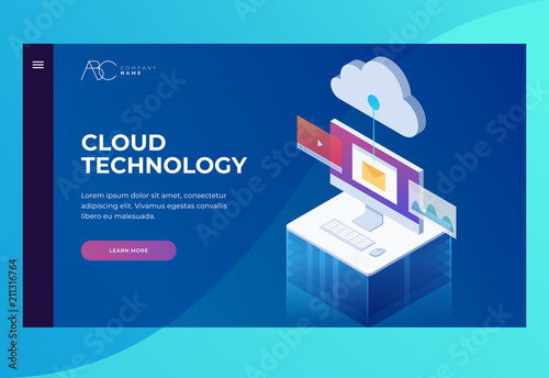The watermark will not be included on Wall mural.: Header for website - design template for landing page - cloud storage - data analysis, checking email,