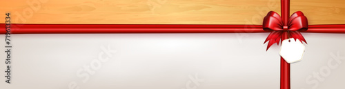 Header with 3d red bow with crossed silk ribbons and paper label tag on white background with copy sWall mural