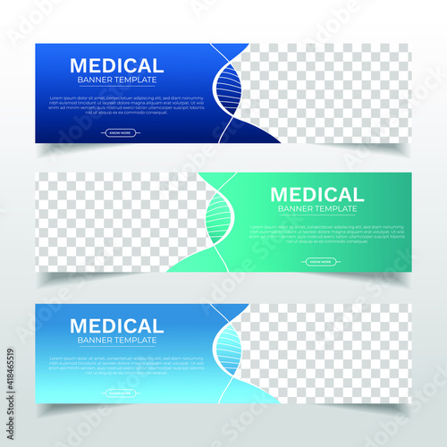 Wall mural : Health medical web banner with place for photo - horizontal layout template - business ad banner - vect