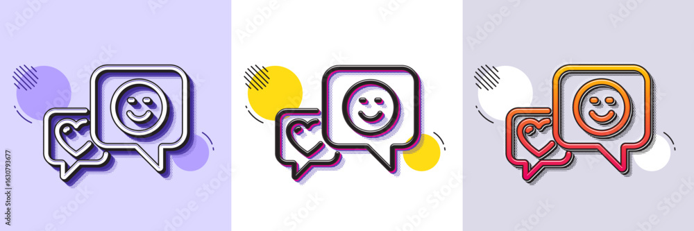 Wall mural : Heart and smile line icon - halftone dotted pattern - gradient icon with grain shadow - favorite like s