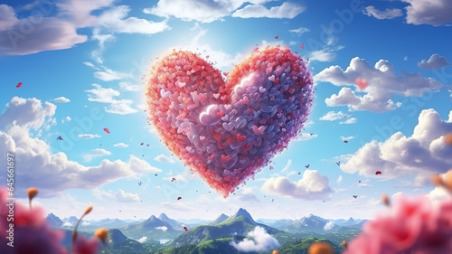 Wall mural : Heart in the clouds with a heart shape - generative ai