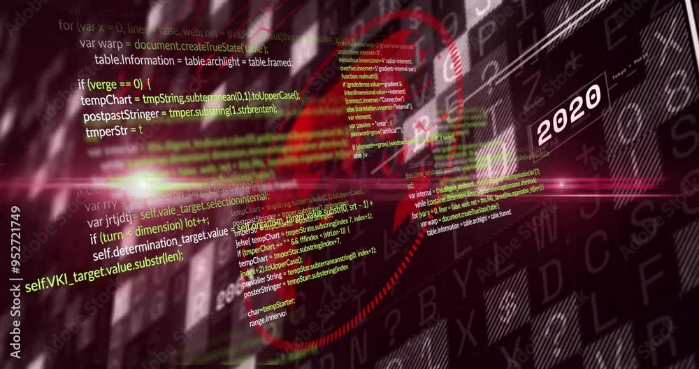 Wall mural : Heart shape and programming code animation over digital background with numbers and letters