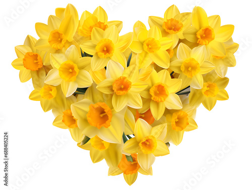 Wall mural : Heart shape bouquet of yellow daffodils isolated on transparent background - design element png cuto