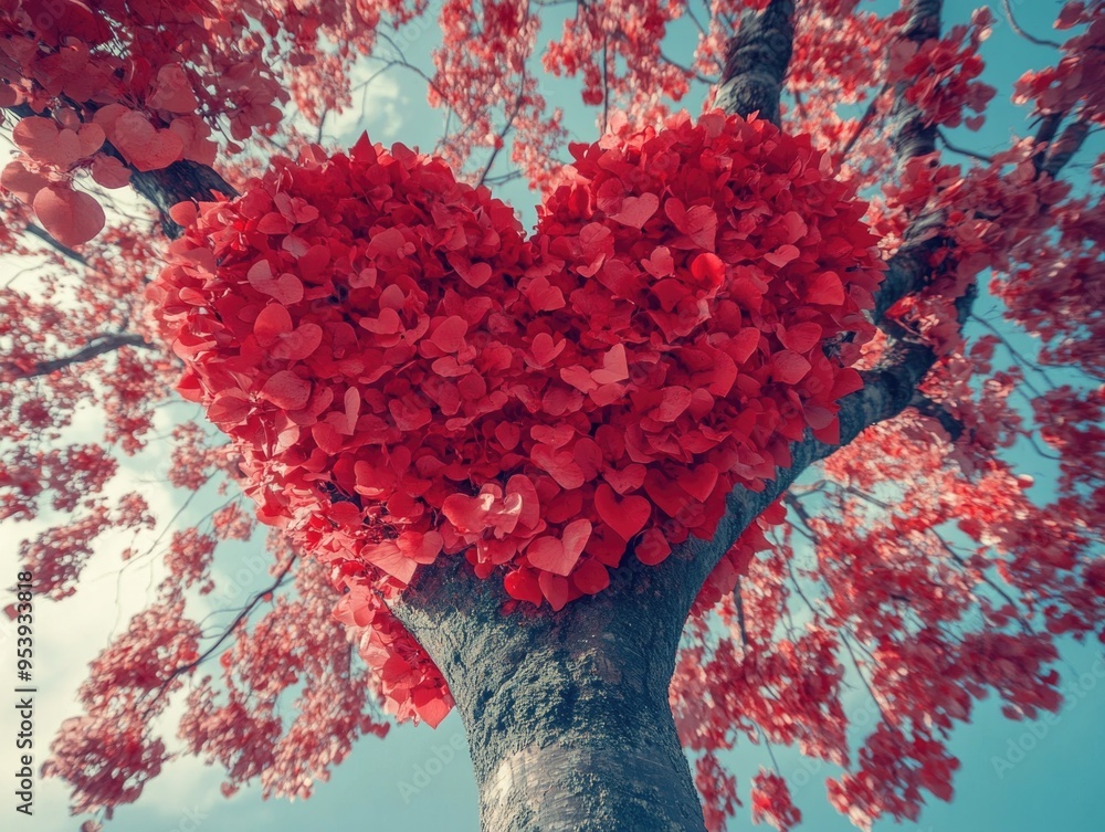 The watermark will not be included on Wall mural.: Heart shaped tree with red leaves