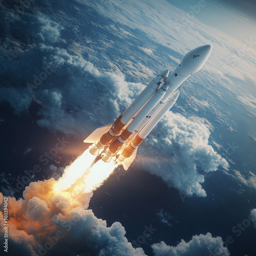 Wall mural heavy reusable rockets launching into space, featuring stage separation. the reusable rocket stages