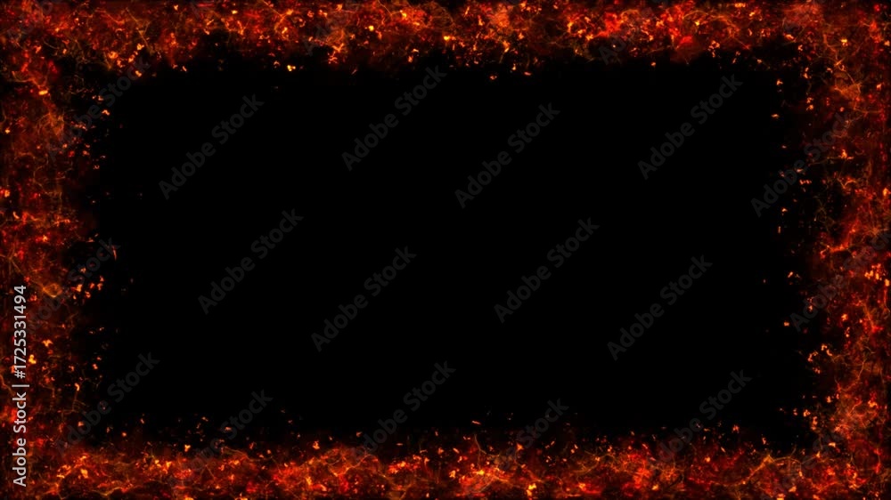 The watermark will not be included on Wall mural.: Hell fire frame flame and red ember particles, border alpha channel loop background
