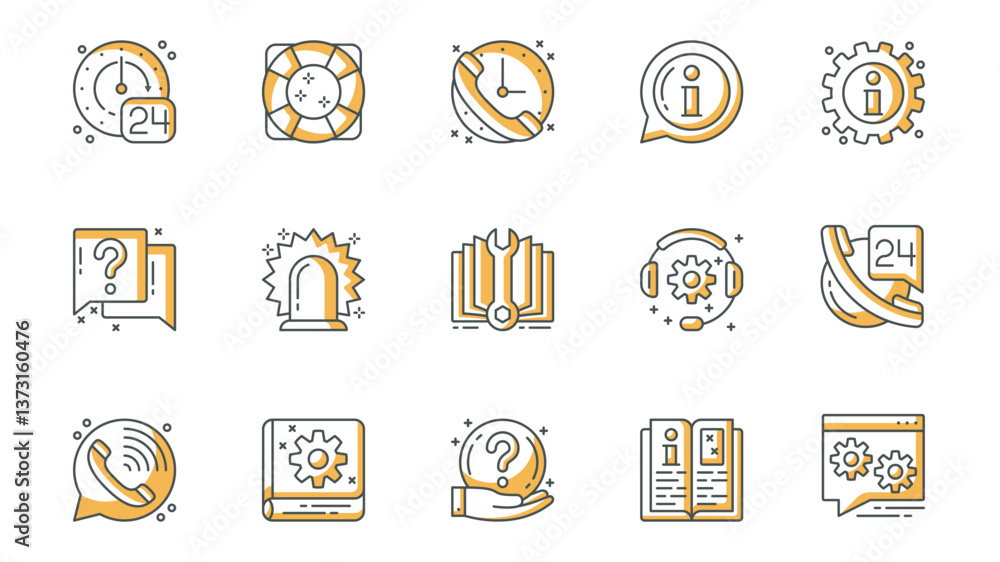 Wall mural help and support icons set in outline stroke design for web. pack line pictograms with clock, lifebu - Wall murals Wall mural help and support icons set in outline stroke design for web. pack line pictograms with clock, lifebu - Wall murals