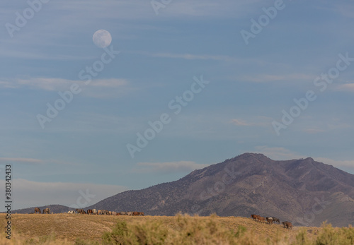The watermark will not be included on Wall mural.: Herd of wild horses and moon in utah