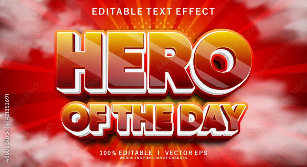 The watermark will not be included on Wall mural.: Hero of the day 3d vector text effect with modern style desig