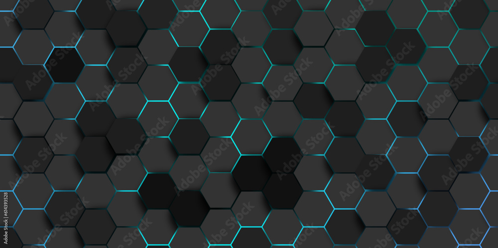 Wall mural hexagonal abstract metal background with light. hexagonal gaming vector abstract tech background.