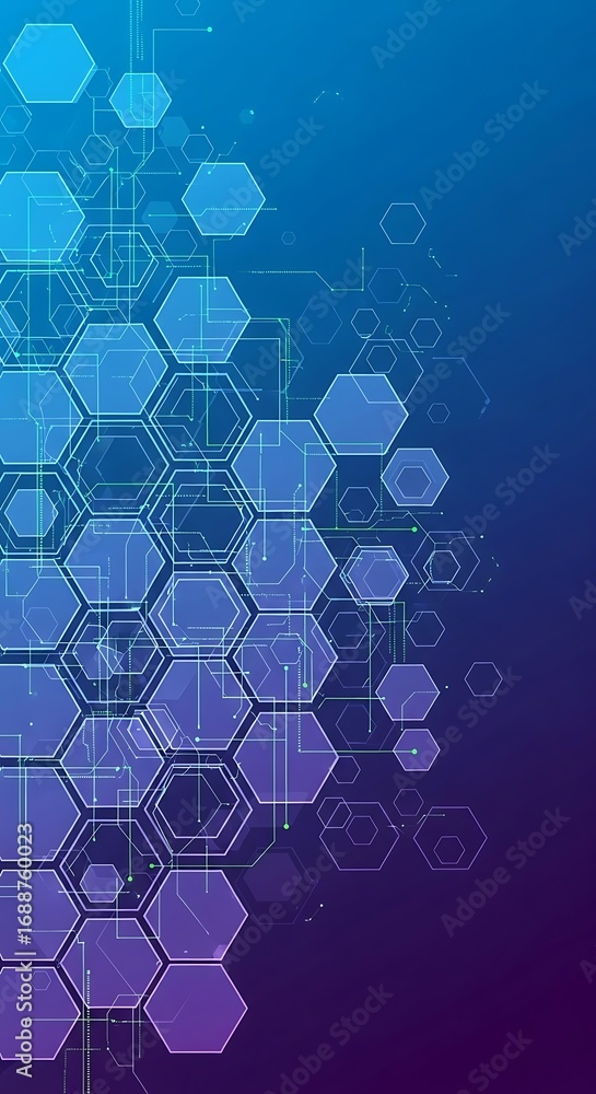 Wall mural hexagonal network array with connection pathways flowing on gradient blue background presenting mode