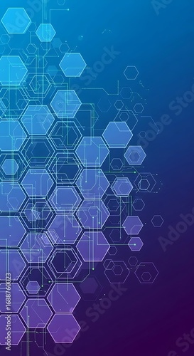 Wall mural : Hexagonal network array with connection pathways flowing on gradient blue background presenting mode