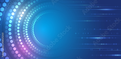 Wall mural hi-tech computer digital technology concept. wide blue background with various technological element