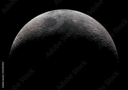 Wall mural high detail 32 panel mosaic of the waxing crescent moon taken at 2.700mm focal length.
