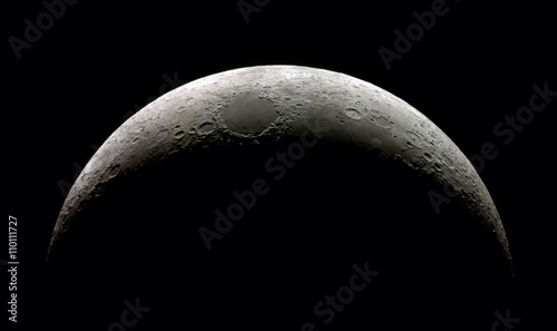 Wall mural : High detail waxing crescent moon (15,4% illuminated) taken with skywatcher mak127/1 - 500@3 - 000mm & as