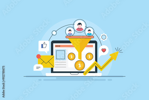 Wall mural : High performance target ads sales funnel generates leads and conversion optimization business strate