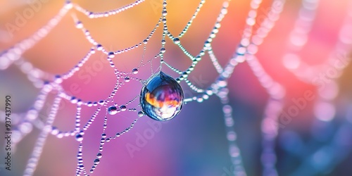 The watermark will not be included on Wall mural.: High-resolution macro shot of a dewdrop on a spider web -