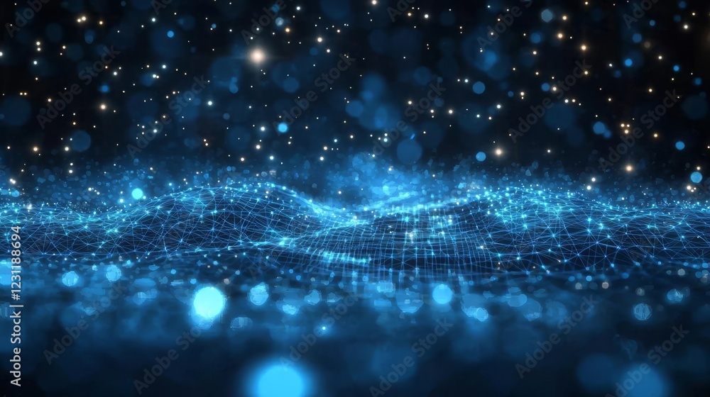Wall mural : High-resolution wallpaper showcasing the interplay of particles in a tech-inspired setting -