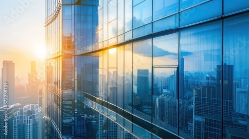 Wall mural high-rise office building with smart energy-efficient windows that tint based on the angle of the su