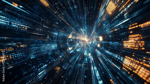 The watermark will not be included on Wall mural.: High speed data stream futuristic digital tunnel of light and code