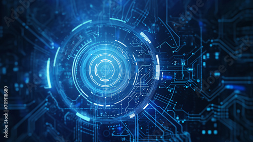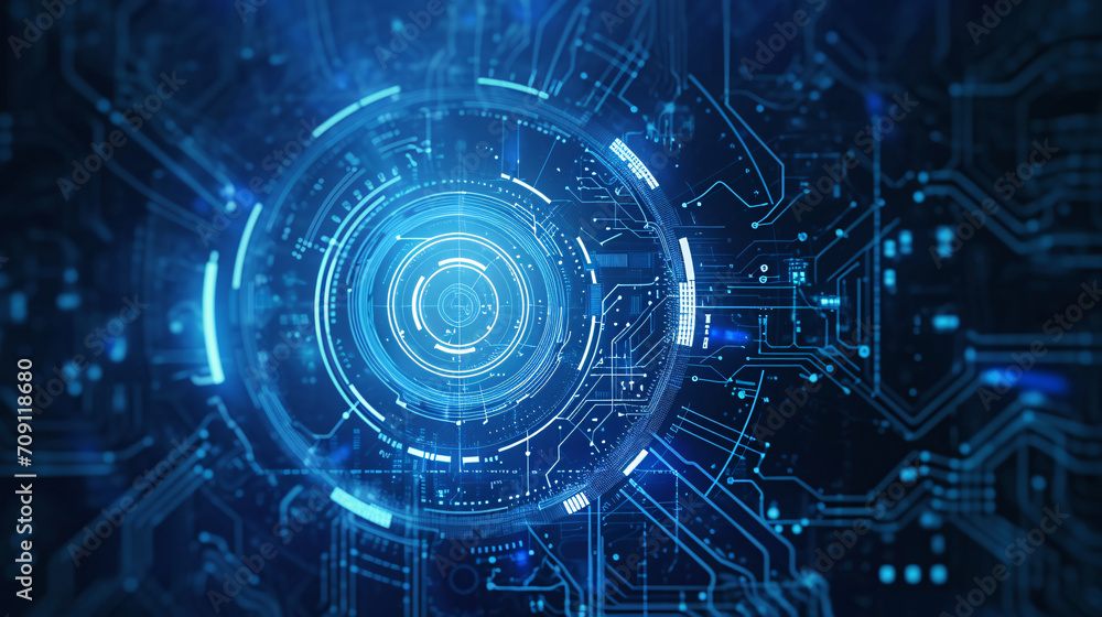 Wall mural : High speed glowing lines background emitted by technology circular turntable, digital abstract creat