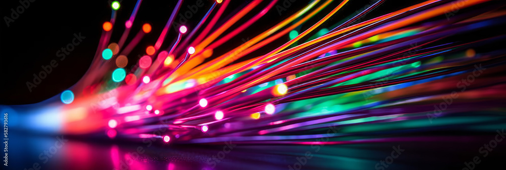 The watermark will not be included on Wall mural.: High-speed network data transfer with colorful lines and an optical fiber speed idea drawing - - gene