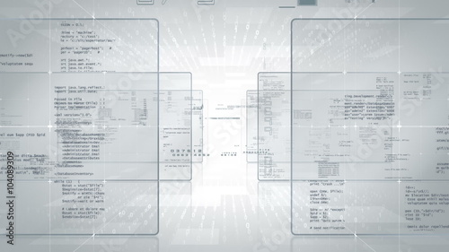 Wall mural high tech animation of a camera moving through pieces of software source code - Wall murals Wall mural high tech animation of a camera moving through pieces of software source code - Wall murals