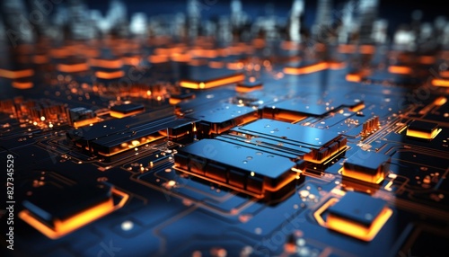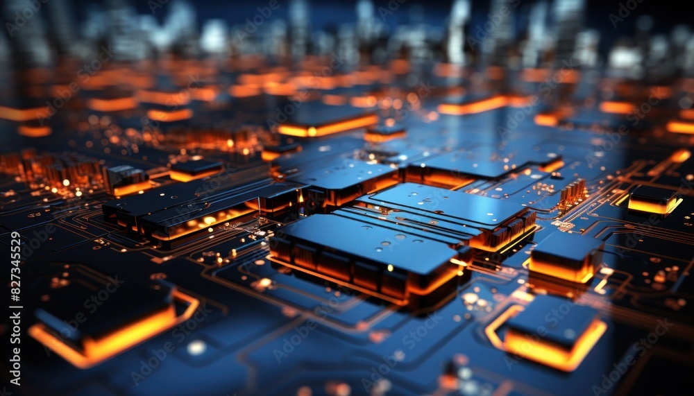 The watermark will not be included on Wall mural.: High-tech circuit board glowing with an array of integrated circuits and electronic components - tech