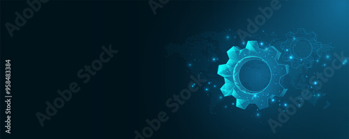 The watermark will not be included on Wall mural.: High-tech communication network cog technology concept background image