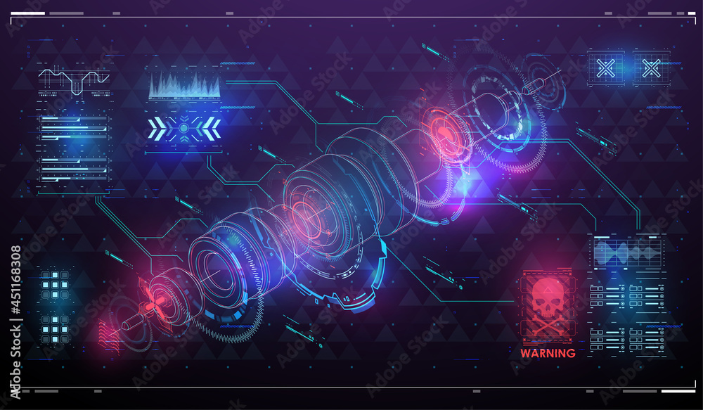 The watermark will not be included on Wall mural.: High tech frame - red futuristic vr display - abstract tech space - cyberpunk sci-fi illustration - head