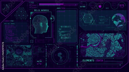 Wall mural high-tech interface with recognition and satellite tracking features