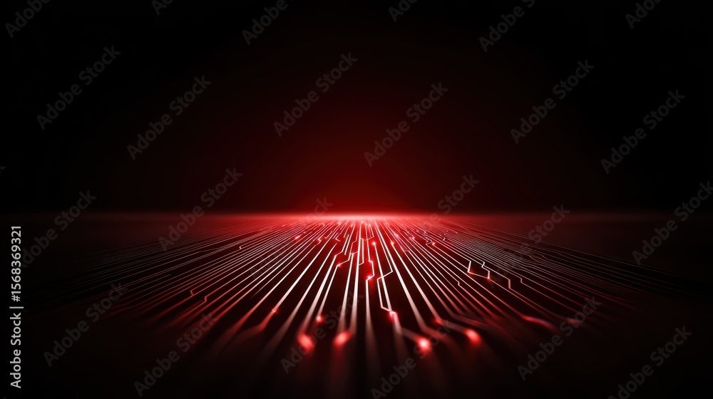 The watermark will not be included on Wall mural.: High-tech red digital background with glowing circuit lines and dynamic light reflections