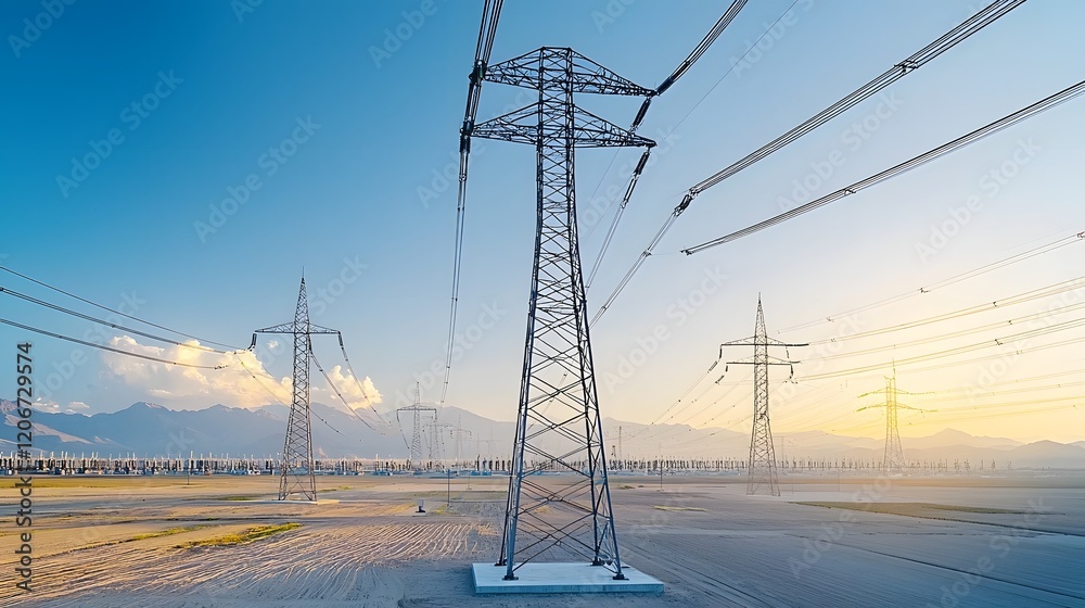 Wall mural high tech smart grid infrastructure with centralized control system distributing renewable energy so - Wall murals Wall mural high tech smart grid infrastructure with centralized control system distributing renewable energy so - Wall murals