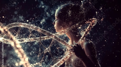 The watermark will not be included on Wall mural.: Highly detailed 3d render of a dna double helix, illuminated with soft ambient lighting