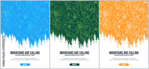 The watermark will not be included on Wall mural.: Hiking and camping gear background - travel equipment, accessories, clothes, etc - for trekking and hik