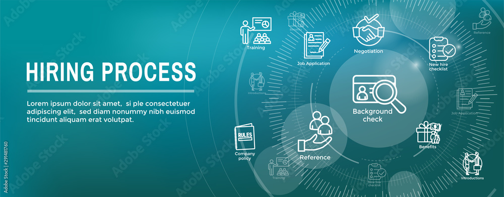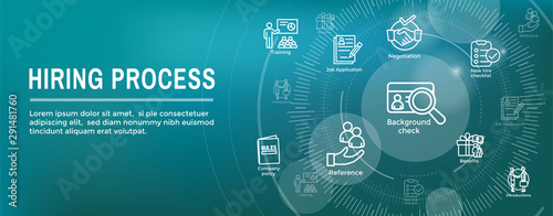 The watermark will not be included on Wall mural.: Hiring process icon set with web header banner