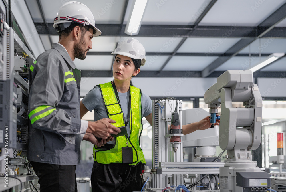 Wall mural : Hispanic engineer team working at electronic and robotics development engineering laboratory - smart