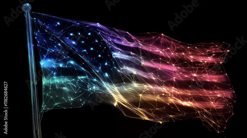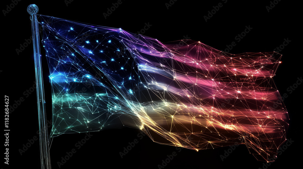 Wall mural : Hologram flag - a flag composed of polygons, triangles, dots, and lines - low-poly design showcasing a