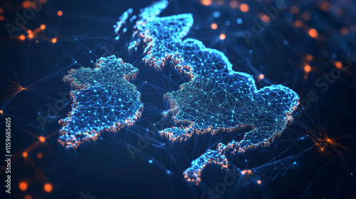 Hologram of great britain - map of great britain of polygons, triangles of points and lines - map of gWall mural