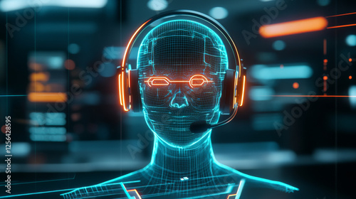 Wall mural hologram support service. the 24-hour support service consists of polygons, triangles of dots and li