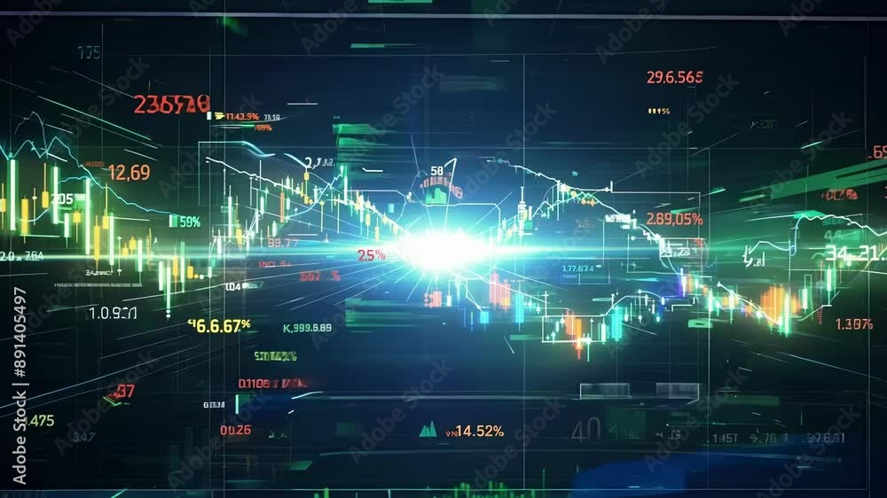Wall mural holograms of stock tickers and market indices scroll through the air giving a realtime update of the - Wall murals Wall mural holograms of stock tickers and market indices scroll through the air giving a realtime update of the - Wall murals