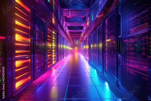 The watermark will not be included on Wall mural.: Holographic data center with glowing servers, created with generative ai