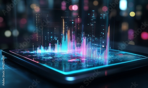 The watermark will not be included on Wall mural.: Holographic data visualization on a tablet display
