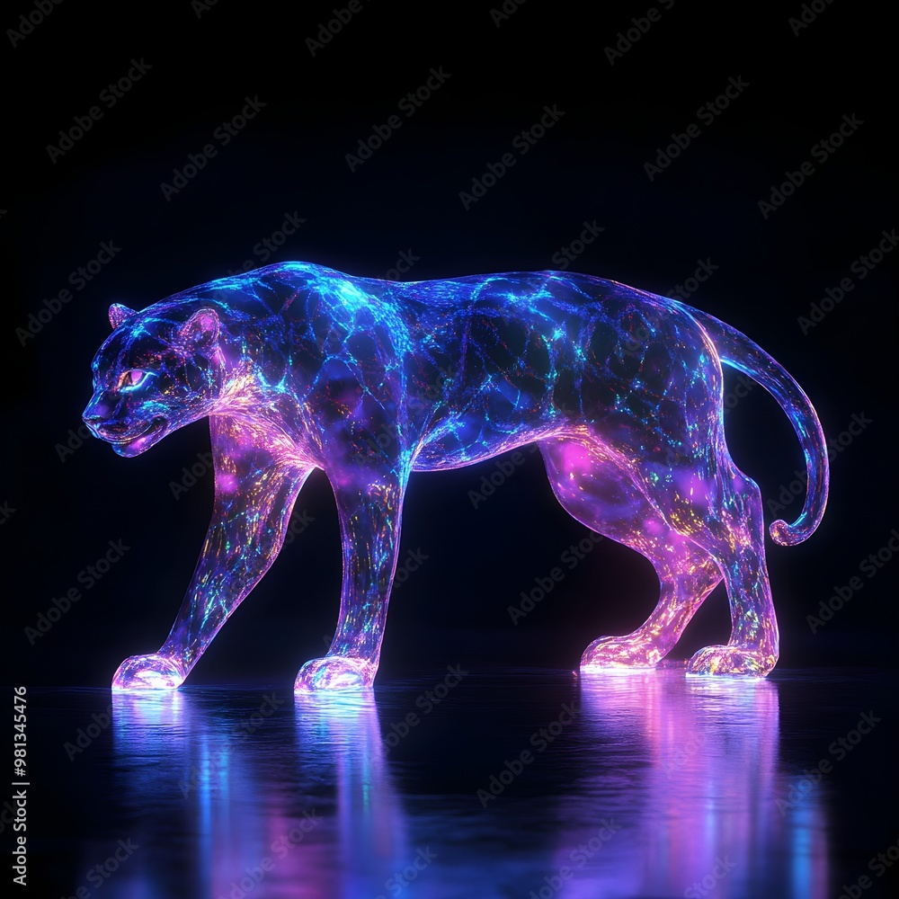 The watermark will not be included on Wall mural.: Holographic neon patterns create an ethereal glow around 3d animal image