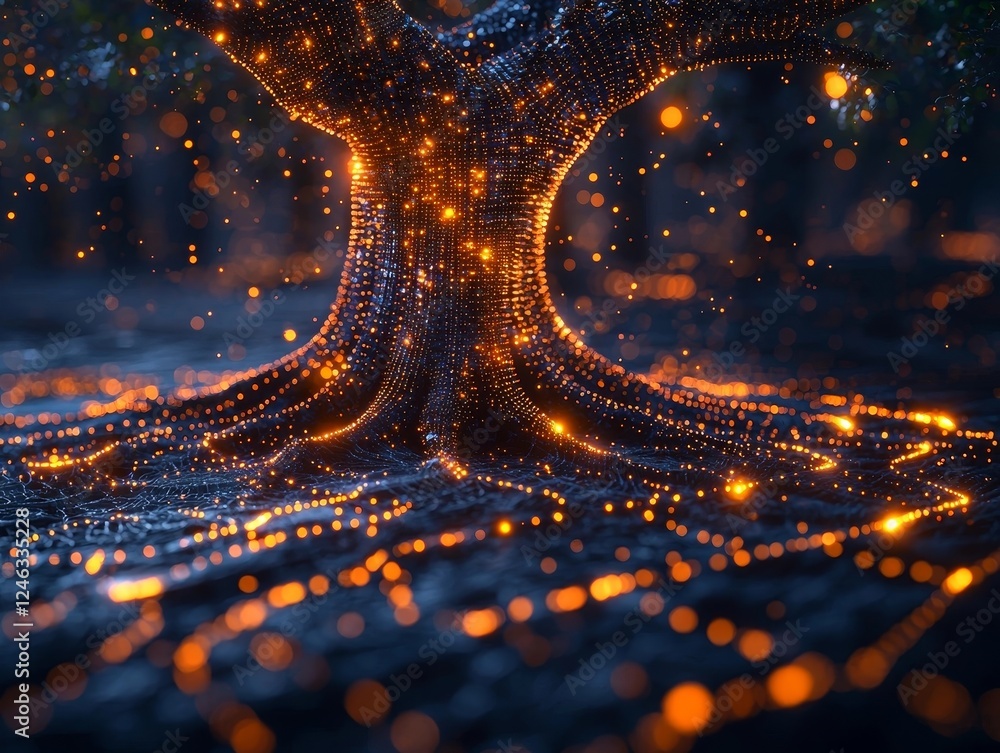The watermark will not be included on Wall mural.: Holographic tree of connected nodes represents successful business networking concept