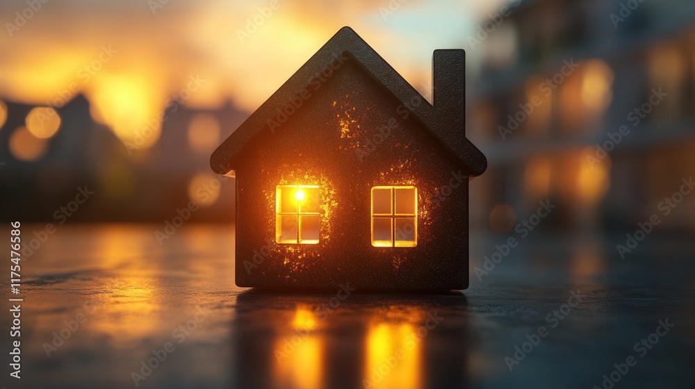 Wall mural : Home icon with sharp edges, displayed on a smooth gradient gray background, modern design with a min
