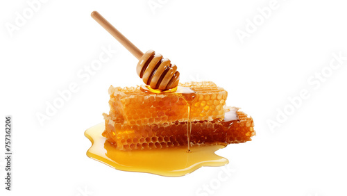 The watermark will not be included on Wall mural.: Honeycomb with honey dipper cutout - isolated honeycomb on transparent background