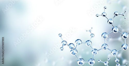 The watermark will not be included on Wall mural.: Horizontal banner with model of abstract molecular structure - background of gray color with glass at