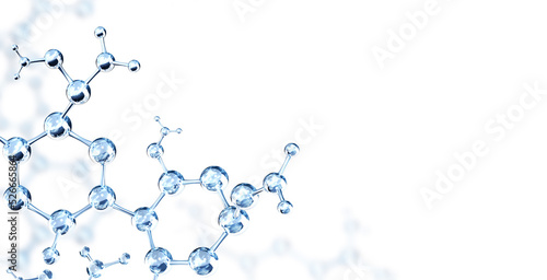 The watermark will not be included on Wall mural.: Horizontal banner with model of abstract molecular structure - glass atom model
